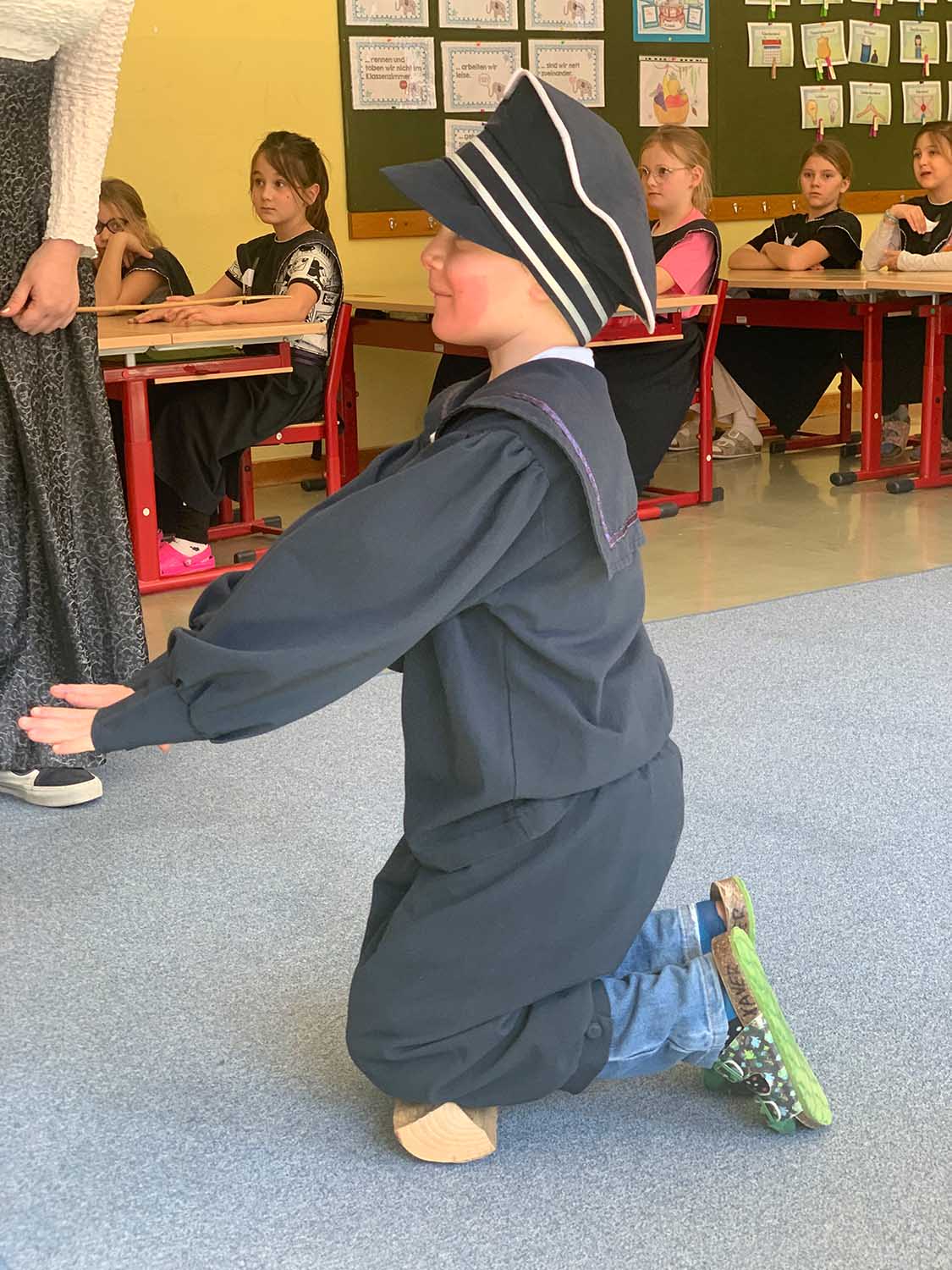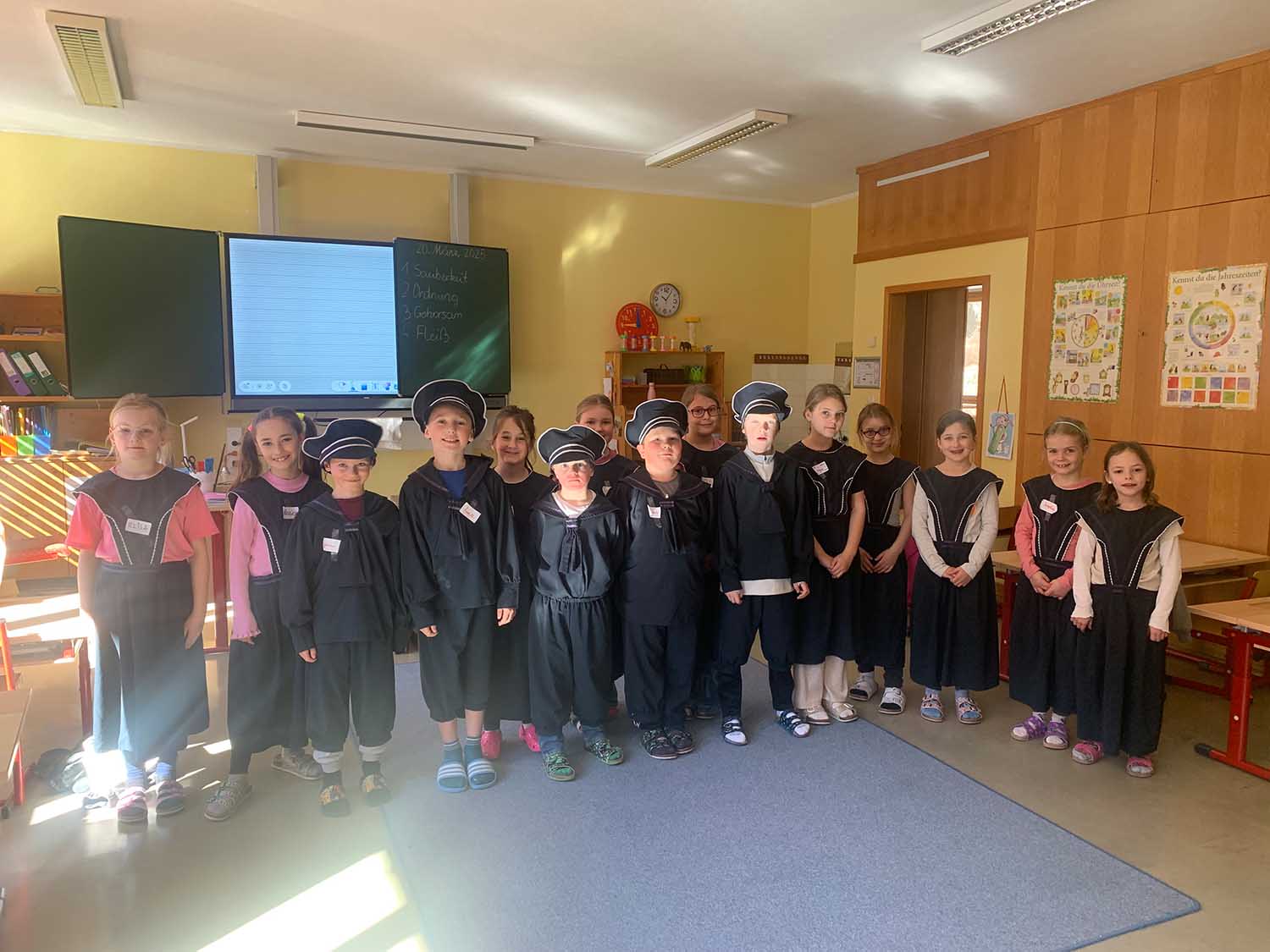 Der nachgespielte Unterricht wie vor 100 Jahren war sehr streng und wirklich anstrengend! Es war sehr interessant, in die Vergangenheit einzutauchen, aber wir freuen uns, dass es heute anders ist und wir einen modernen Unterricht besuchen dürfen!