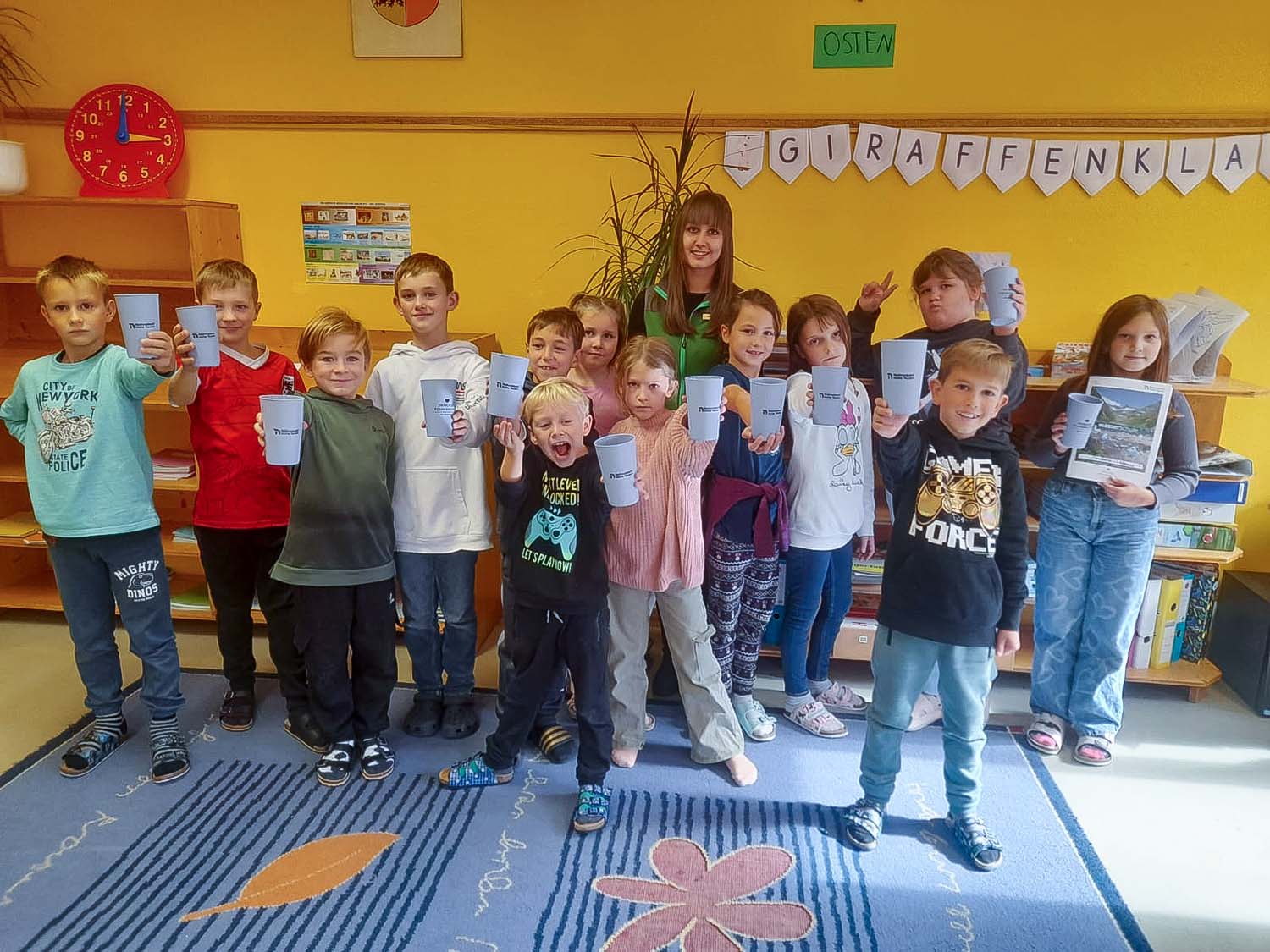 Unser Herr Bürgermeister Kurt Schober stattete uns einen Besuch ab und brachte für jedes Schulkind eine personalisierte Trinkflasche mit! Gleichzeitig wünschte er den Kindern und Lehrern ein gutes Schuljahr und viel Erfolg beim Lernen!
