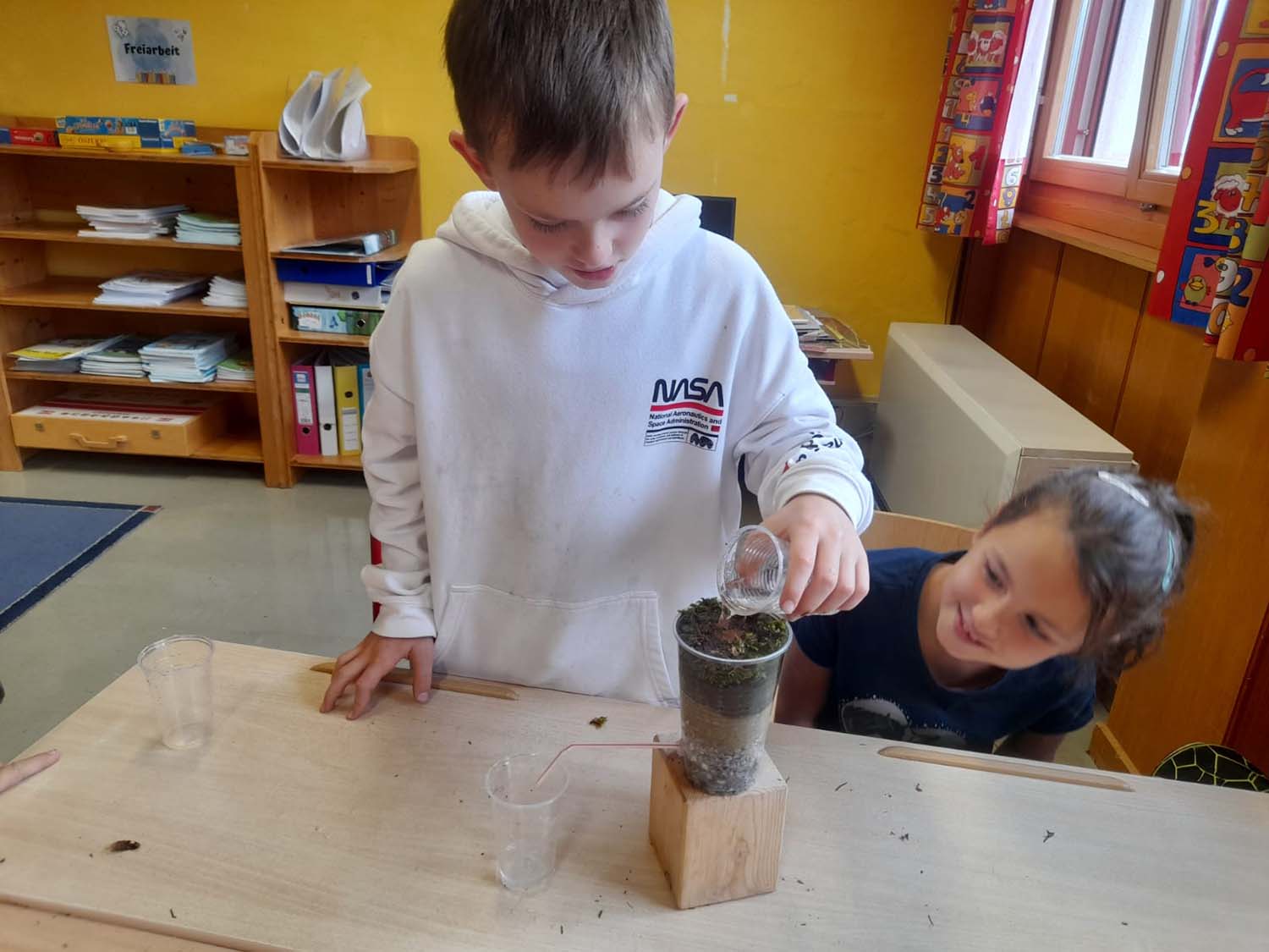 Heute machten sich die Schülerinnen und Schüler der 3. und 4. Schulstufe auf den Weg zum Fragantbach, um diesen zu erkunden. Das theoretische Wissen konnte beim Suchen von Kleinstlebewesen sowie beim Beschreiben der Bachsituation angewandt werden. Mit Rangerin Kathrin hatten die Schulkinder eine sehr kompetente Fachfrau an ihrer Seite. Ein besonderes Highlight waren natürlich die selbstgebauten Wasserfahrzeuge der Kinder!